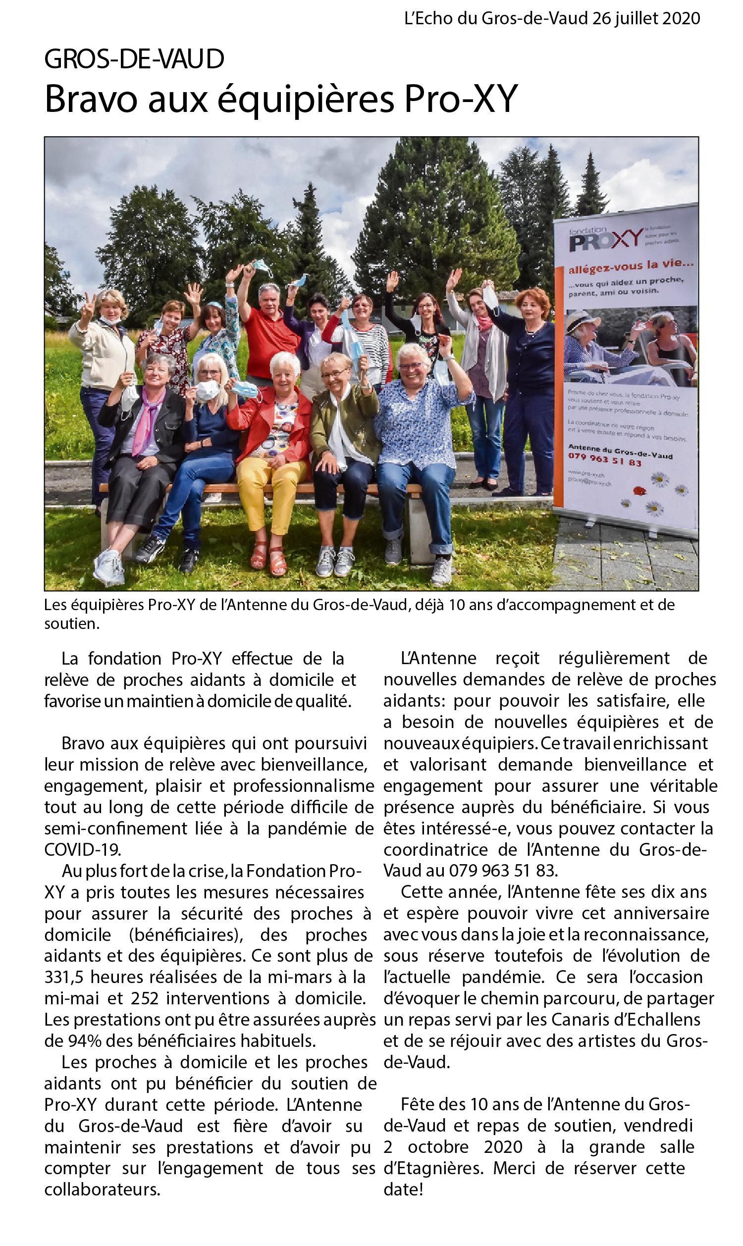 Vous avez du temps libre et cherchez une activité accessoire? Envoyez votre CV et lettre de motivation à la coordinatrice régionale grosdevaud@pro-xy.ch